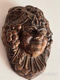 Maschera da parete vintage di Bacco per i romani Dio del vino..in terracotta