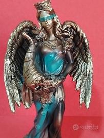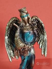 Scultura Dea Fortuna (Tyche) Oro Brunito e Blu Pet