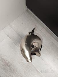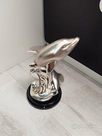 Vendo scultura raffigurante un delfino su base firmata Brunel, appartenente alla linea “Preziosi d’autore”, realizzata dal 1972. Opera artistica decorativa realizzata con lamina in argento 999, come indicato sulla base originale, completa di marchio ufficiale di identificazione e certificazione “Made in Italy”. Oggetto elegante e raffinato, ideale come complemento d’arredo o per collezionisti di oggetti artistici e in argento. Condizioni ottime, sempre conservato con cura. Prezzo: 40€ trattabili Disponibile per ritiro a mano o spedizione. Contattami per ulteriori informazioni o foto.