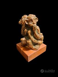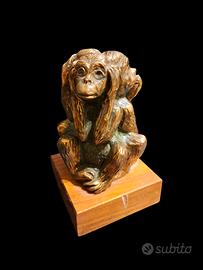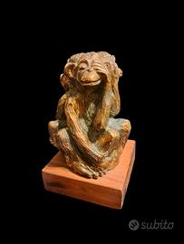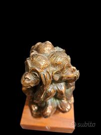 Scultura in Bronzo su base in legno delle 3 scimmiette: NON VEDO - NON SENTO - NON PARLO
