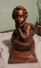 Bellissima scultura che raffigura Aleksandr Pushkin, guande poeta russo del 1800 in veste di fanciullo adagiato sopra ad un sofà. La scultura è di misure contenute 30x10 altezza 18 cm con una bellissimo bronzo brunito