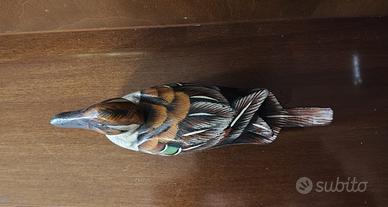 Scultura vintage originale decorativa in legno massiccio intagliato e dipinto a mano, con colori realistici che sembrano richiamare il piumaggio di un esemplare maschio di Anatra Selvatica (Anatra Sposa).