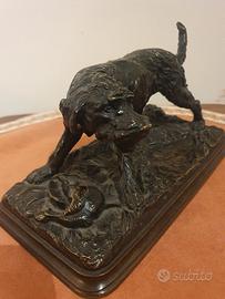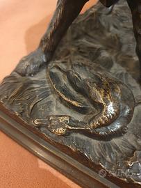Scultura di Bronzo raffigurante Cane da caccia con oca firmato da Alfred Dubucand, artista francese del 1800. In ottimo stato come di vede dalle foto. Firmato in basso a destra. Dimensioni 25x12 cm