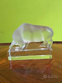 Scultura di Toro in cristallo, Lalique. Fine anno 70. A fondo satinato con base rettangolare. Dimensioni: 10 X 5 X 11,5 cm