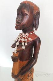 Scultura Donna Masai in legno intagliato. Mis. cm 61x11