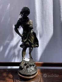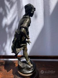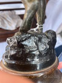 Scultura in metallo firmata – primi ‘900 Affascinante scultura in metallo (materiale non identificato con precisione), risalente ai primi anni del ‘900 e firmata. Un oggetto dal grande carattere, perfetto per collezionisti o per chi ama pezzi d’arte d’epoca. La firma è presente sull’opera (come da foto). La patina e i segni del tempo ne confermano l’autenticità e il fascino storico. Epoca: inizi ‘900 Materiale: metallo non identificato Altezza: 30 cm Firma: presente Condizioni: buone, con normali segni del tempo Spedizione disponibile dopo accordi con l’acquirente su i costi Antico antica antiquariato scultura