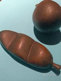 Scultura " Carruba in metallo Non Ferrosi. Pezzi n° 1 Scultura " Melanzana in" Pietra pezzi .n° 1 oggetti esclusivamente antico Arte decorazione tavolo. prezzo set. 25 EUR