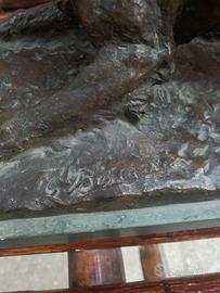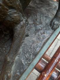 La resa anatomica privilegia la tensione muscolare e l’equilibrio della postura rispetto alla definizione descrittiva del pelo, secondo una sensibilità naturalista tipica della scultura animalier italiana del primo Novecento.