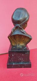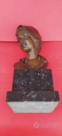 Busto di "Contadina" in bronzo con base in marmo nero firmata De Martino. Dimensioni: cm. 9.5 x 9.5 x H. 22. Si valutano proposte di acquisto con ritiro a domicilio.