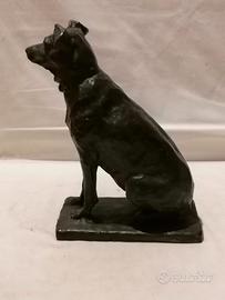 Scultura in bronzo attribuita a Ezio Ceccarelli cane seduto come da foto allegata misura cm 25x17,la base cm .9 Epoca primi del 900.