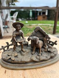 Scultura in bronzo con porta calamaio dimensioni Lunghezza cm 16 Larghezza cm 8 Altrzza cm 10 Peso 1020 gr