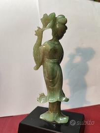 Antica scultura in Giada, Fanciulla danzatrice Cinese, prima metà del XX sec. H20 cm con base in marmo nero assoluto. Sarà accuratamente confezionata per un trasporto sicuro. Anche possibilità di ritiro di persona