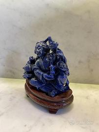 Scultura artigianale in lapislazzuli autentico, completa di base in legno lavorato.