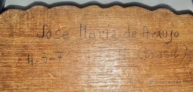 Scultura in legno, arte popolare Brasile, raffigurante Cristo con cappio al collo, firmata "Josè Maria De Araujo, Belo Horizonte 1973".