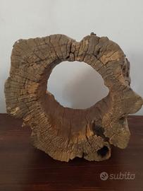 legno proveniente da un ulivo millenario scultura realizzata da Rossetti titolo" I custodi del tempo" peso 5 kg diametro esterno 37 cm. la parte più grande interno 19 cm.