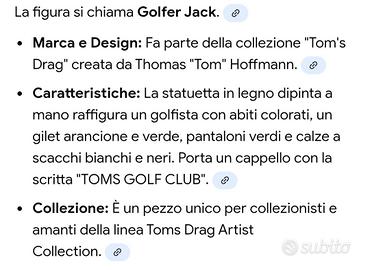 Scultura in legno dipinta a mano, di Thomas " Tom " Hoffmann. Fa parte della collezione " Tom's Drag " Pezzo unico per collezionisti.