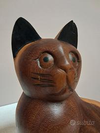 Scultura in legno Gatto bicolore portafortuna degli anni '70.