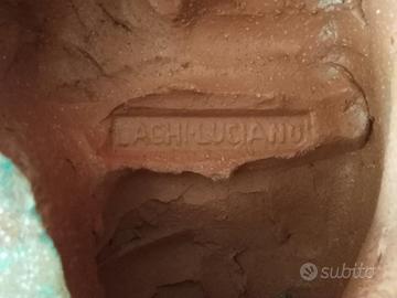 Laghi Luciano scultura in terracotta smaltata caratterizzata da forme concave e convesse che creano un effetto di astrazione, firma incussa sul fondo "Laghi Luciano" ottime condizioni, dimensioni: lunghezza cm. 28 altezza cm. 9,5 profondità cm. 20