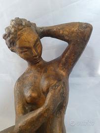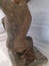 Scultura in terracotta patinata epoca XX secolo. Segni dell'età visibili in foto. Base in marmo con angolo mancante. Altezza 31 Larghezza 16 Profondità 16.