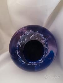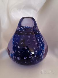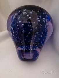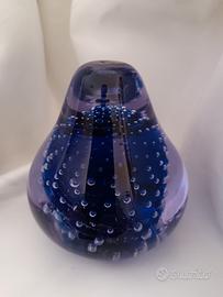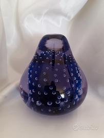 Elegante scultura in vetro artistico massiccio caratterizzato da un intenso colore blu con suggestive bolle d’aria inglobate che creano un affascinante effetto tridimensionale. La forma morbida e organica, unita alla profondità del vetro, lo rende un oggetto decorativo di grande impatto. Altezza: 9 cm Peso: circa 600 g Base levigata e stabileo Epoca seconda metà ‘900 (Murano) Ottime condizioni generali, senza rotture o crepe.
