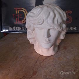 Scultura della testa del cantante dei Doors, Jim Morrison, a grandezza naturale. Il materiale è gesso armato, con una patina effetto marmo.