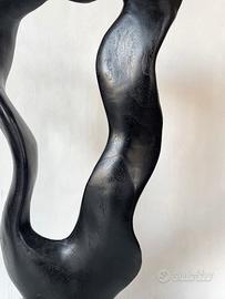 Elegante scultura dal titolo "La Danse" realizzata da anonimo scultore francese astratto, si presenta interamente in pregiato legno teak laccato nero con una robusta base cubica in marmo nero.