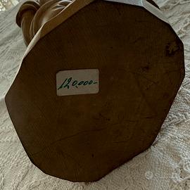 Rarità: Sul fondo è ancora presente l'etichetta originale con il prezzo dell'epoca di 120.000 Lire, che ne certifica l'acquisto in epoca pre-euro (fine anni '80 / anni '90) e l'appartenenza alle serie storiche più pregiate della zona. Un pezzo da collezione ideale per chi cerca l'autentica arte lignea gardenese, perfetto come elemento d'arredo o regalo di valore.