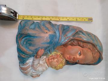 Scultura lignea Madonna Bambino XIX secolo capoletto capezzale italiano antico