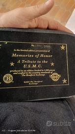 La scultura è intitolata “Uncommon Valor Was A Common Virtue” ed è una riproduzione commemorativa prodotta nel 2007 dalla Bradford Exchange. Questa frase è celebre per essere stata pronunciata dal Vice Ammiraglio Chester W. Nimitz in onore dei soldati statunitensi durante la Seconda Guerra Mondiale, in particolare in riferimento alla battaglia di Iwo Jima. La scultura rappresenta un gruppo di soldati che issano la bandiera americana, emulando l'iconica scena immortalata nella fotografia di Joe Rosenthal.