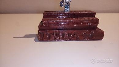 rara piccola scultura dedicata ai mondiali del 1990 in metallo su piedistallo in materiale plastico altezza 11 cm circa larghezza 4 cm circa di dello scultore Ferdinando Codognotto
