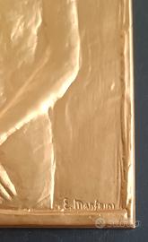 Bassorilievo in metallo dorato del Maestro Enrico Manfrini, realizzato per commemorare l'Ostensione della Sacra Sindone del 2000 a Torino.