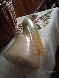 Bella scultura di pappagallo brasiliano in materiale marmo o onice o altra pietra dura colorata. Colori belli e delicati . Vedi foto. Altezza 25 cm. Primo contatto a mezzo Subito. Grazie