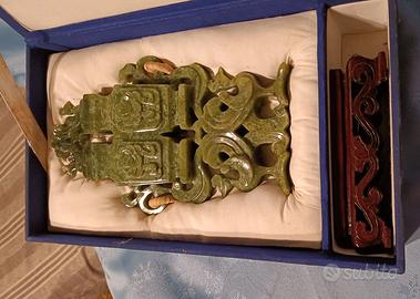Scultura in bellissima pietra GIADA verde cinese antica