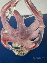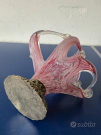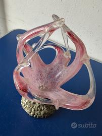 Come da titolo vendo Scultura Portacaramelle Vintage in Vetro di Murano. Base in metallo finemente lavorata con motivi floreali, vetro soffiato con sfumature rosa e trasparenti. Ottime condizioni. Perfetto per arredamenti o collezionisti. Misure: altezza circa 27cm, larghezza circa 22cm.