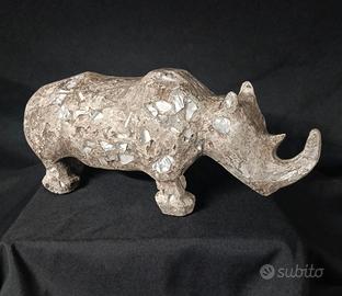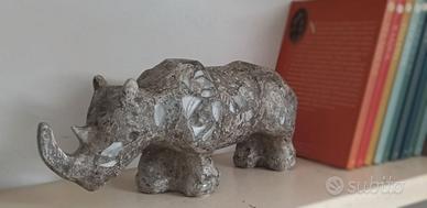 Vendo scultura rinoceronte pezzo unico, soprammobile da scrivania, scolpita a mano, materiale Biocalce pietra, impreziosita con pezzi di cristallo; misure 32x15x9 cm; peso 2,5 kg circa; al tatto levigata come marmo.