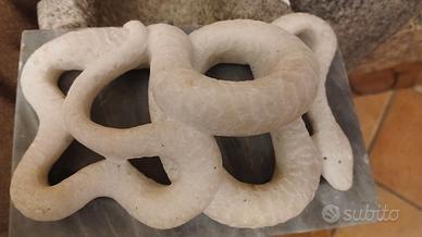 Scultura di serpente in stile "Harry Potter" anni 50/60 in marmo bianco e con base in marmo grigio. Misure 10x16x6 di altezza. Manca un bullone di sostegno, ma non lo sostituisco perchè, come si vede, l'altro è stato costruito artigianalmente, non è "perfetto".