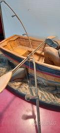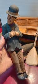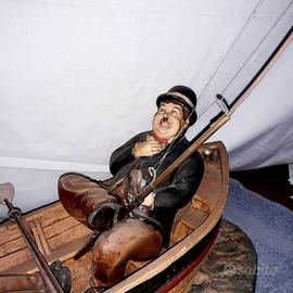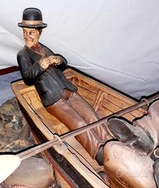 Solo pochissimi esemplari. Scultura anni 80, Stanlio e Ollio pescatori, realizzata in resina e colorata a mano. I personaggi e la canna da pesca sono movibili. La barca misura circa 40 cm.