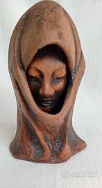 Scultura in terracotta fatta a mano raffigurante una donna con un velo. - Materiale: terracotta. - Soggetto: figura femminile velata. - Misura altezza cm. 13,5