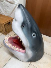 Proposta davvero particolare per chi cerca un elemento d’arredo fuori dal comune. Vendo imponente testa di squalo in resina, realizzata con grande attenzione ai dettagli e con un forte impatto visivo. Un oggetto scenografico che cattura immediatamente l’attenzione, perfetto per ambienti che vogliono distinguersi. Ideale per: * locali (ristoranti, cocktail bar, pub a tema) * vetrine e allestimenti * eventi * collezionisti o amanti del design originale Le dimensioni importanti la rendono protagonista assoluta dello spazio. Dimensioni: * Altezza: 80 cm * Larghezza: 60 cm * Profondità: 75 cm Condizioni: L’oggetto è strutturalmente solido, ma presenta: * alcune ammaccature superficiali * piccole crepe nella vernice in alcuni punti Questi segni sono puramente estetici e non compromettono la resa scenografica, anzi possono contribuire a un aspetto più “vissuto” e realistico. Prezzo: 290 € trattabili Note: Ritiro a mano consigliato viste le dimensioni.