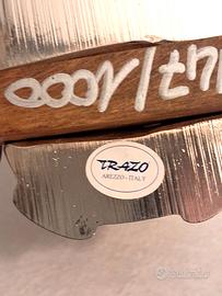 In legno, argento e ceramica smaltata, etichettata TRAZO e numerata 147/1000, nuova (ma senza confezione) e mai esposta, condizioni perfette e senza sbeccature, lunghezza cm.15,5, larghezza cm.10, altezza cm.13. Euro 290. Visibile a Milano. Fausto: 340/98.22.657.
