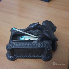 Vintage scultura uccello porta cerino in lega (Ghisa?) prima metà XX secolo