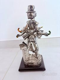 Vendo elegante scultura d’epoca raffigurante una figura maschile con ombrello, realizzata in metallo con finitura argentata. Sul fronte della base è presente il marchio Gold Line, mentre sul retro sono incisi il nome dell’autore e la dicitura “Déposé 936”, che indica modello registrato, elemento tipico delle produzioni artistiche europee tra fine Ottocento e primi del Novecento.