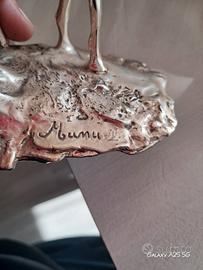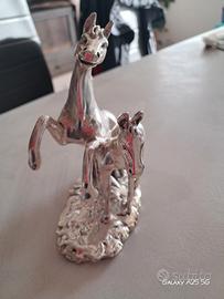 Bellissima scultura decorativa in argento laminato (ricoperto) 800, raffigurante due cavalli in movimento. L'opera è un classico dell'artigianato artistico italiano della seconda metà del Novecento.