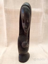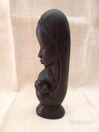 Rara e bellissima scultura vintage raffigurante Madonna con bambino. Realizzata in legno di ebano finemente scolpito. Africa, prima metà del XX secolo. Pezzo unico da collezione.
