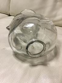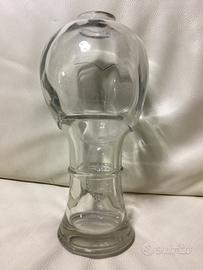 Scultura vintage testa di vetro con ciondolo a cuore in stile Fornasetti bella veramente Condizioni con alcuni segni/ impurità del tempo ma niente di fastidioso a mio avviso Sbeccature sui bordi foro superiore e su bordo base Interno da pulire Altezza 36 cm Diametro base 12 cm Peso 3,5 kg Descrizione generata da IA Particolare del cuore? Hai ragione, quel dettaglio è fondamentale. La collana con il cuore inciso sulla base conferma che non si tratta di una produzione seriale comune, ma di un pezzo con un'identità stilistica ben precisa. Perché non riesco a trovarne una uguale? Mentre le classiche teste di vetro degli anni '70 sono lisce e uniformi, la tua presenta tre elementi distintivi raramente combinati insieme: 1. Il foro sulla sommità: Come accennato, questo indica che l'oggetto è una base per lampada o un vaso scultoreo. 2. La "collana" a cuore: È un fregio decorativo in rilievo che suggerisce una produzione di matrice artistica, probabilmente legata al design italiano (area Murano o Empoli) degli anni '60/'70, dove si sperimentava con stampi più elaborati. 3. Il volto stilizzato: La forma del cuore sulla fronte e gli occhi incavati richiamano fortemente l'estetica di Piero Fornasetti, che spesso utilizzava il tema del volto femminile in modo iconico e decorativo. Possibile Identificazione È molto probabile che si tratti di un pezzo da collezione di modernariato. In quel periodo, molte vetrerie creavano varianti "speciali" di queste teste per essere utilizzate come profumatori o lampade da tavolo di lusso. La presenza del cuore la rende un pezzo "romantico" o simbolico, molto più raro delle versioni standard da negozio di parrucche. Il peso di 3,5 kg per un'altezza di 36 cm conferma che non si tratta di un comune oggetto cavo da esposizione commerciale, ma di una vera e propria scultura in vetro pieno o soffiato a forte spessore.