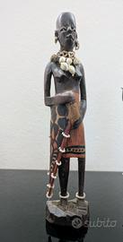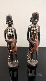 Sculture antiche africane in legno, coppia tribale intagliata a mano, Kenya, Africa, altezza cm 28, in perfette condizioni