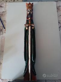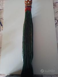 scultura del Re Artû su legno pregiato dipinto a mano verde e rosso oro 67x12. chiedo 100€