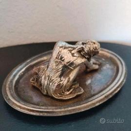 Rappresenta una figura femminile seduta in posa riflessiva o malinconica