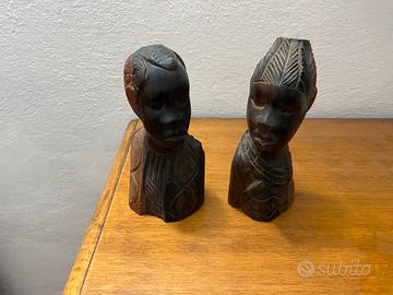 2 sculture lignee africane intagliate a mano, legno d’ebano.