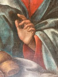 tela appare in buono stato generale, con qualche segno di usura e piccole cadute di colore visibili in alto a sinistra.